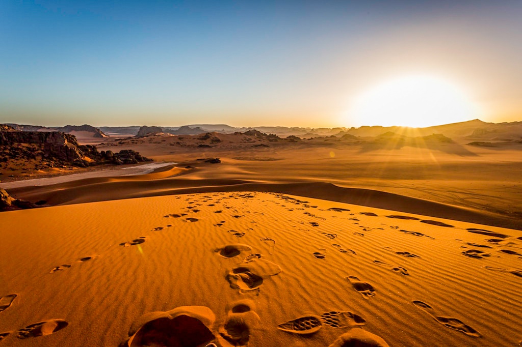 Programunk második felében átrepülünk a Szahara mélyébe, Tamanrassetbe, ahol belépünk az Ahaggar Nemzeti Park világába, ahol a vulkanikus hegyláncok látványa, a Tuareg kultúra és a sivatagi égbolt csendje fogad majd minket. Ahogyan mélyebbre hatolunk a Szaharába, elérjük Djanetet, és innen indulunk Észak-Afrika egyik legrejtélyesebb helyére, a Tassili N'Ajjer Nemzeti Parkba. Több ezer éves sziklarajzok, természetes kőívek és homokkő sziklák között túrázunk, miközben sátrazva éljük át a sivatag valóságát, Algéria talán legérintetlenebb táján.