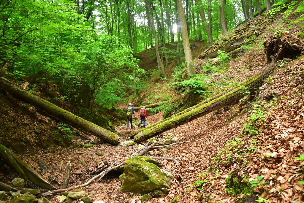 3Reggeli után a 30 km távolságra lévő Csesznekre hajtunk, ahol teszünk egy rövid látogatást a cseszneki várban, majd azokkal, akik részt vesznek a fakultatív via ferrata kiránduláson pár perces sétával elérjük a Csesznek vár alatt található Kőmosó-szurdokot, ahonnan különböző nehézségű, rövid ám annál izgalmasabb via ferrata utak indulnak. Először egy egyszerűbb, rövid B/C nehézségű utat járunk be, majd következik egy nehezebb útvonal, ahol három rövid D nehézségű szakasz vár minket. A nagyjából kétórás program után visszasétálunk szállásunkra és csatlakozunk a via ferratát kihagyó társainkhoz, hogy rövid pihenő után induljunk mai túránkra. A Csesznek határában található parkolót elhagyva a piros jelzésen haladunk. Cseszneket elhagyva lassan ereszkedő turistaösvényen haladunk tovább, egy gyönyörű bükkös erdőben kerüljük meg a Töbör-hegyet, átvágunk a Rekettyés-patak völgyén és egy lassan emelkedő ösvényen érjük el Bakonyoszloptól délre az Ördög-árkot. A Dudari-erdő és az Alsó-erdő között alakult ki ez a félhomályos, kanyargós szurdok, a vízfolyások rombolása és néhány barlang beszakadása révén. A völgyoldal szikláiban, ereszeiben csaknem 50 kisebb-nagyobb fülke, barlang, hasadék bújik meg, a szurdok alját hatalmas, mohás szikladarabok borítják. Több patakátkelés után érünk el az Ördög-árok legmeghatározóbb pontjához, az Ördög-gátnak nevezett szűkülethez, ahol egy meteorit méretű szikladarab állja a Dudar patak útját. Itt található az Ördög-gát felett 32 méter magasan a Bakony egyik legnagyobb barlangja, az Ördög-lik. Miután elhagyjuk az Ördög-árkot, rátérünk a zöld jelzésre, amely felvezet a Kő-hegyre, majd innen ereszkedünk le a Kő-árokba, ahol láthatjuk, hogy nem szurdokvölgyben járunk, mivel nincsenek kétoldalt sziklafalak vagy zárt katlanok. Egy meredek lejtőkkel határolt, mély, olykor élesen kanyargó, árnyas völgyben túrázunk. Az egyre szűkülő Kő-árok száraz medre melletti ösvény hangulatos vonalvezetéssel követi a patak folyását. A jobb oldalon a fák mögött egy hosszú, magas mészkősziklafal húzódik, több hasadékkal, fülkével. Amikor elérjük a völgy legkeskenyebb, legsziklásabb részét, le kell ereszkednünk a száraz patakmederbe és az itt heverő kövek és fák között átvergődve folytatjuk utunkat. Lassan szelídül a Kő-árok és hamarosan enyhén emelkedve kijutunk a völgyből. Innen pár perces gyaloglás után érünk ki a cseszneki országútra, ahol pár száz méteres gyaloglás után érünk vissza kiindulópontunkhoz. Ellátás: reggeli. Túratáv: 13 km, szintemelkedés: 340 m fel és le.