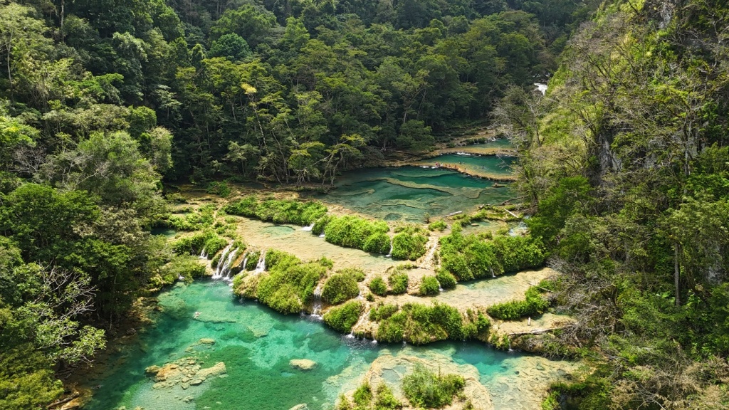 8. nap Lanquín, Semuc ChampeyA napot kora reggeli indulással kezdjük Lanquínból, dzsipekkel utazunk kb. 45 percet a sűrű dzsungelen át Semuc Champey természeti csodájához. Érkezés után egy rövid, de meredek túrával felkapaszkodunk a Mirador kilátópontra, ahonnan lélegzetelállító panoráma nyílik a smaragdzöld, lépcsőzetes mészkőmedencékre. A túra után leereszkedünk a folyópartra, és megmártózunk a kristálytiszta, természetes fürdőmedencékben. Szállás: lodge, ellátás: reggeli.