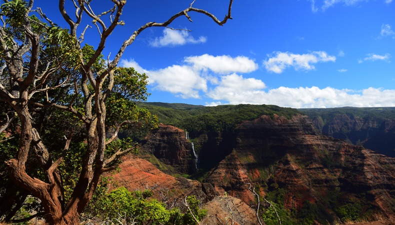 Waimea-canyon trail, táv: 9 km, szintkülönbség: 450 m le, 450 m fel, menetidő: 4-5 óra. -