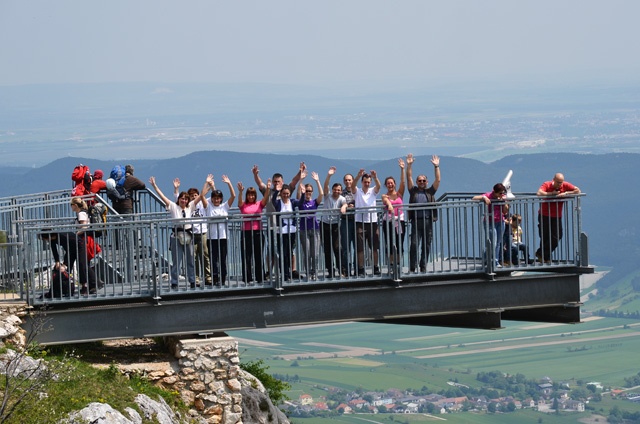2Indulás Budapestről reggel 6 órakor. Találkozás 5.45-kor a XI ker. Pázmány Péter sétány és a Magyar Tudósok krt. sarkán levő parkolónál (az ELTE új épületei mellett, a Petőfi-hídtól 5 percre az A38 hajóval szemben). Kb. 5 órás utazást követően érjük el a Hohe Wand hegytömbjét. Az összekészülődés után a Hanselsteig A/B nehézségű ferrátájának kiinduló pontjánál elindulunk a csodálatos sziklafal felé. Aggodalomra semmi ok, mi nem a felszerelést igénylő ferráta útvonalon indulunk a hegy megmászására, hanem a fal alatti nem kevésbé gyönyörű turista utakon haladunk. A Vollerin útvonalon kapaszkodunk fel a fennsíkra, ide felérve a bátrakkal az alulról már megcsodált, sziklafalból kinyúló Skywalk kilátóra megyünk ki, s onnan csodáljuk meg az egyedülálló kilátást, onnan bátoríthatjuk a falon magukat felküzdő sziklamászókat. Túránkat a fennsík szélén futó turistaúton folytatjuk, majd a kiépített, igen érdekes és impozáns látványt nyújtó, 250 méteres sziklafal oldalába épített kilátóra ereszkedünk le. Innen utunkat fenyőerdőn keresztül az autóbuszunk felé vesszük, hogy visszainduljunk szálláshelyünk felé, ahol a bemelegítő kis túránkat követően felkészülhetünk a következő napi túránkra a Weichtal-szurdokban. -