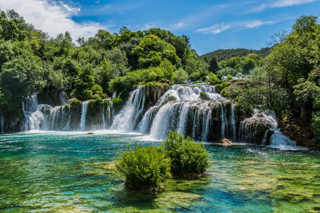 Plitvicei-tavak Nemzeti Park: a világörökség része, 16 türkizkék tavat rejt e térség, amelyeket vízesések és zuhatagok kötnek össze. A nemzeti park gazdag növényvilága is gyönyörű látványt nyújt, amely páratlan állatvilággal párosul (medvék és farkasok birtokolják a környező, turisták által nem látogatott részeket). Krka Nemzeti Park: itt található egyik legnagyobb, többlépcsős vízesésrendszer, a Skradinski Buk. A 800 méter hosszú vízesés 17 lépcsőből áll, mely bő vízhozama miatt lenyűgöző látványt nyújt.