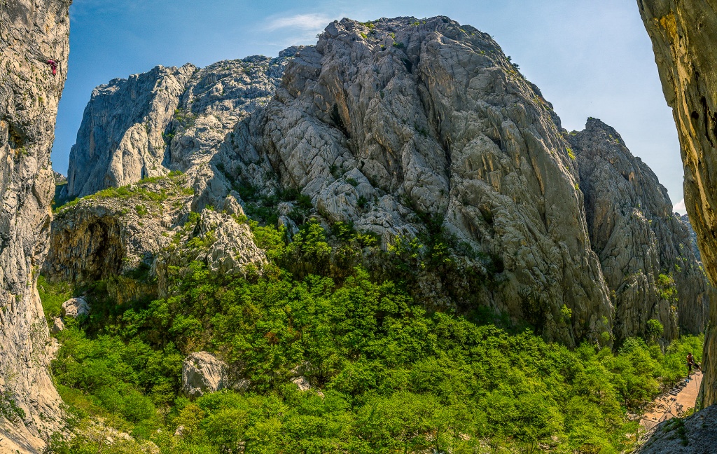 3A mai napon csodálatos környezetben fogunk túrázni. Reggeli után indulunk a szállásunktól nem messze lévő, tengerpart közelében fekvő Paklenicai Nemzeti Parkba. Rövid utazás után érkezünk a túránk kiindulópontjára, a Mala Paklenica szurdokvölgy bejáratához. Megvesszük belépőinket, majd elindulunk egy, néhol a patakmeder oldalában haladó ösvényen. A vadregényes szurdokban haladva hagyjuk magunk mögött a tengerparti tájat. Eleinte lassan emelkedik utunk, majd helyenként meredek kaptatókat leküzdve haladunk tovább, rövid pihenőket beiktatva, hogy hidratáljunk, pótoljuk az energiát és természetesen fotózásra is marad idő. Meredek, helyenként függőleges sziklafalak szegélyezik utunkat, a tavasszal megáradó patak hatalmas sziklákat hordott a szurdok aljába, melyeket kerülgetve, átkapaszkodva rajtuk tudunk tovább haladni. Gyalogösvényünk ezután egy fennsíkra kanyarog fel, ahol egy megállunk egy hosszabb pihenőre, elfogyasztjuk magunkkal hozott ebédünket, majd tovább indulunk. Körben 1700 méteres hegycsúcsok látképével érkezünk a fennsík pereméhez, ahonnan lefele vezet utunk. Egy másik ösvényen indulunk el lefele a park bejáratánál hagyott járműveinkhez. Nagyjából kétórás gyaloglás vár ránk, közben több megállóval, hogy gyönyörködhessünk az utunkat körülvevő zord sziklavilágban és az egyre gyakrabban felbukkanó tenger látványában. A késő délutáni órákban érünk vissza szállásunkra és még mielőtt lemenne a nap, vacsora előtt még van idő csobbanni egyet az Adriai-tenger hűsítő vizében. Menetidő: 8-9 óra, szintkülönbség: 680 méter fel/le, túratáv: 15 kilométer. Szállás: apartmanokban. -