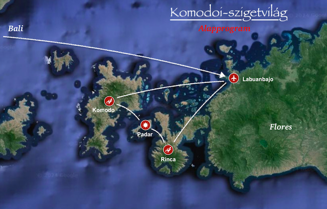 A komodói szigetvilágban egy 3 napos hajókirándulásra és sznorkel túrára indulunk, hogy ezt a mesés szigetcsoportot és híres víz feletti / alatti világot felfedezzük. Mivel a program jelentős részén hajózni fogunk, az úszás tudás erősen javasolt. Sokat fogunk a tengeren hajózni, számítani kell rá, hogy a csendes vizek a bármikor feltámadó szélben hullámossá válhatnak. Amennyiben hajlamos vagy a tengeri betegségre, erre is készülni kell. A hajók egyes esetekben a part menti mólónál tudnak kikötni, de a móló telítettsége esetén lehet, hogy egyik hajóról a másikra átmászva tudjuk a mólót megközelíteni, sőt egyes esetekben ez csak a derékig érő vízben gázolva lehetséges.