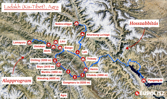 Ladakh területéről ezen a térképen megnézhetjük a környék szentélyeit, túraösvényeit, környezetét.