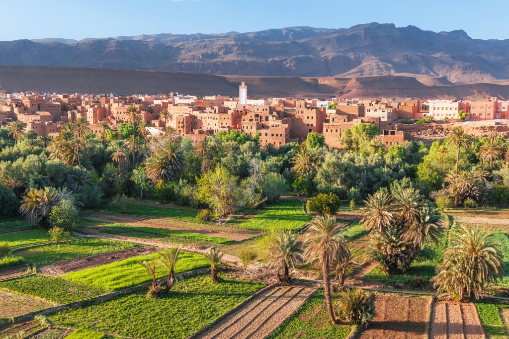 - Tinerhir oázisvárosa a kiterkedt datolyaligetekkel,