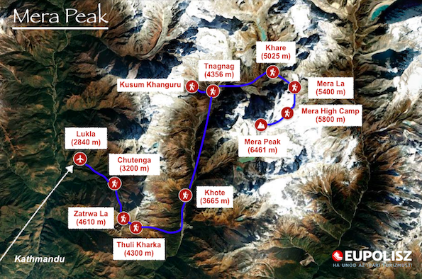 A Mera Peak csúcsmászás technikailag ugyan csak könnyű gleccsertúra, melynek nehézsége hasonló egy Grossvenediger mászáshoz - ám mindez majd’ kerek 3000 méterrel magasabban! A fő nehézséget elsősorban a nagy magasság és a szélsőséges időjárás jelenti. Mindenképpen elegendő időt kell szánnunk az akklimatizációra, a programunkban erre nagy hangsúlyt helyezünk, de az is nagyon fontos, hogy már eleve valamilyen szinten akklimatizálódott állapotban érkezzél a túrára, azaz augusztus-szeptemberben tölts el az Alpokban néhány napot 3-4000 méter felett! A túra során rendszeresen, naponta mérjük a résztvevők véroxigén szintjét és pulzusát, hogy az akklimatizációt pontosan nyomon kövessük.