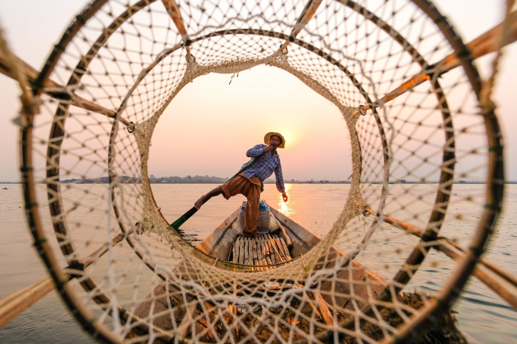 - Inle-tó, ahol lábbal eveznek a halászok,
