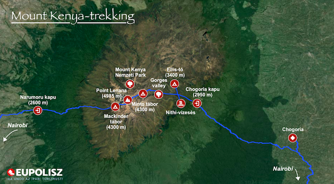 - az 5 napos Mount Kenya trekkingtúrát, sátor szállással,