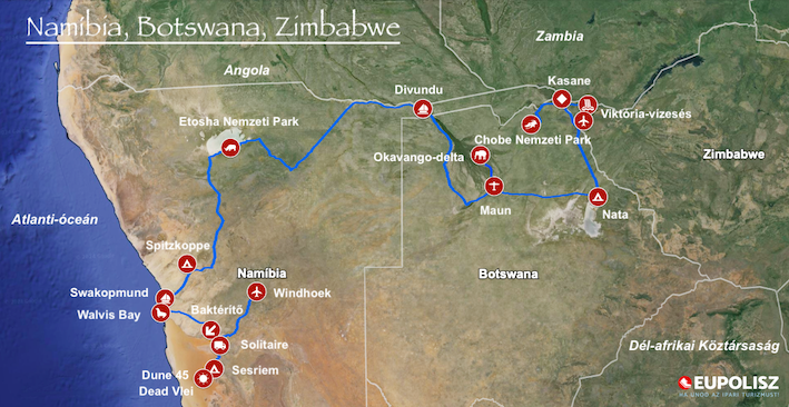 A nemzetközi repülőjegy tájékoztató ára (Budapest - Windhoek / Victoria Falls - Budapest útvonalon) 620.000 Ft - 670.000 Ft-tól. (2025. március 05.)Utazás