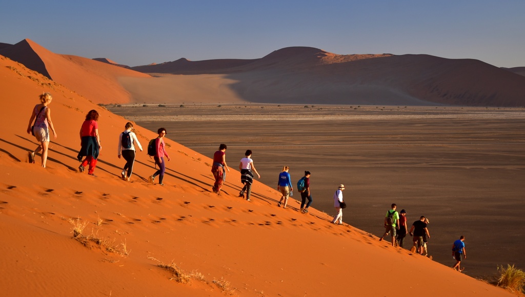 1Ma végre belevágunk a kalandokba. Elindul megbízható járművünk, amin az elkövetkező napokban sok időt fogunk tölteni. A Namib-sivatag szívébe indulunk, ahol évmilliók óta a homok uralkodik, létrehozva a világ talán leghatalmasabb csillagdűnéit. Évi pár milliméter csak a csapadék, de a sivatag él, oryxok, sakálok, gazellák kutatnak élelem után a dűnék között. Útközben Solitaire vár ránk, ahol felfrissítjük magunkat és megtekintjük az itt összegyűjtött, időjárás tépázta autókat, megkóstolva Afrika legjobb almás sütijét. Ezután érkezünk meg szállásunkra, a Namib-sivatag szívébe, Sesriembe, ahol két éjszakát töltünk. Vacsora előtt még a híres Sesriem kanyonba ereszkedünk le, ahol élvezzük a hűvös levegőt a hatalmas falak között, megkeresve a vizet a mélyben. Végül ismerkedési estet tartunk a Dél-keresztje alatt, a világ legősibb sivatagában. Szállás: kemping, ellátás: reggeli, ebéd, vacsora. -