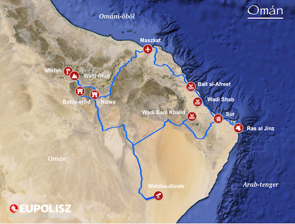 Omán az Arab-félsziget délkeleti részén fekszik. Kedvező földrajzi fekvése miatt a téli időszakban (október-március) nagyon kellemes a klíma, ezért sokan választják utazási célpontként. A hatalmas kőolaj- és földgázbevételeknek köszönhetően az ország rendkívül fejlett és modern. Omán mindeközben megőrizte ősi tradícióit, s állami célkitűzésük is, hogy ez az állapot fennmaradjon. Az ország rendkívül gazdag természeti és kulturális látnivalókban, ami miatt az ország sok ember számára lehet vonzó célpont, mégsem áramlik oda annyi turista, mint a szomszédos Egyesült Arab Emírségekbe. A meglévő turisztikai infrastruktúra bár nagyon fejlett, a választék mégis kicsi. Ráadásul Ománnak egyelőre nem célja, hogy a kisebb pénzű turisták célpontjává váljon, ezért az árak nagyon magasak és tömegközlekedés lényegében nem is létezik. Az utunk során érintett legfőbb látnivalók is szinte kizárólag saját járművel közelíthetők meg.