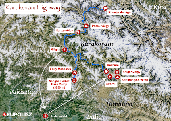 Így nevezik a világ legmagasabban haladó nemzetközi útját, ami egyben a világ egyik legszebb útvonala is. A "legek" ezzel nem érnek véget, ugyanis itt található a világ legmagasabban fekvő határátkelőhelye is. A Karakoram Highway 1300 km hosszan, Pakisztánt és Kínát köti össze, egyes szakaszai 4000 méter fölé nyúlnak, nem véletlen tartják a világ nyolcadik csodájának, a kilátás lélegzetelállító.