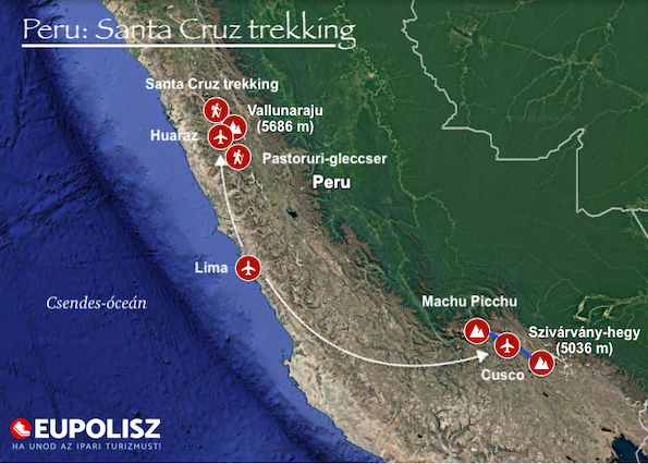 - az 5 napos Santa Cruz trekkinget sátorszállással, teljes ellátással,