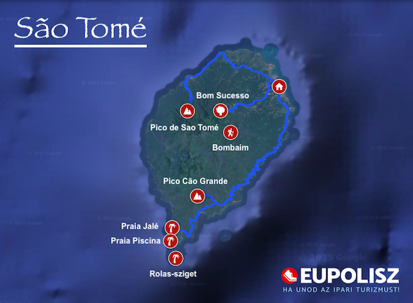 - a kirándulásokat São Tomén: Bom Sucesso Loop, Pico Cão Grande, teknősles, kakaóültetvény, Rolas-sziget,