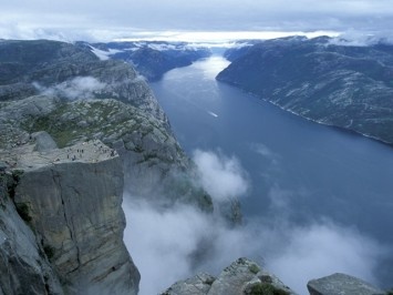 3Reggel frissen kipihenve, túrafelszerelésben találkozunk a busznál, hiszen egész napos kirándulásra indulunk arra a helyre, amely minden valamirevaló norvég képeslapon látható. Buszunkkal csak az Oygardssolen parkoló és kilátóteraszig tudunk felkapaszkodni, innen már gyalog folytatjuk utunkat. Lélegzetelállító panoráma köszönt minket és már itt sejtjük, hogy ez egyre jobb lesz, minél feljebb megyünk. A sziklás terep valóban nem könnyű, de megéri a végsőkig kitartani, hiszen a célunk a Kjeragnosen nevű sziklaterasz. Ez a norvég vagabundok egyik legkedveltebb gyülekezőhelye, és hogy miért, azt hamarosan látni fogjuk. Innen a gyakorlott bázisugrók több mint ezer méteres mélységbe vetik alá magukat, és ha szerencsénk lesz, talán találkozunk is egy-két „őrülttel", és megcsodálhatjuk hajmeresztő mutatványukat. Ha máshol eddig nem is, de itt aztán igazán aprónak és törékenynek érezhetjük magunkat a hatalmas természettel szemben. De ez még nem minden! Még megyünk egy kicsit, amíg el nem érünk a Kjeragbolten nevű kőtuskóhoz. Ez az az ovális alakú szikladarab, amely látványos módon, két függőleges sziklafal közé szorulva várja sorsa beteljesülését, a lezuhanást. Ide szoktak a nagyon bátor vagy inkább vakmerő turisták kimászni és elkészíttetni saját képeslap fotóikat. Az élményt még inkább fokozza, hogy a szikla alatt dübörög alá egy vízesés, amely finom permetével állandóan nedvesen tartja a környező sziklákat, ezért a „kimászós mutatvány" nem éppen veszélytelen vállalkozás. A kötelező fotók elkészítése után visszaindulunk a buszunkhoz. (Túratáv: 10 kilométer, szint: 700 méter fel/le).
