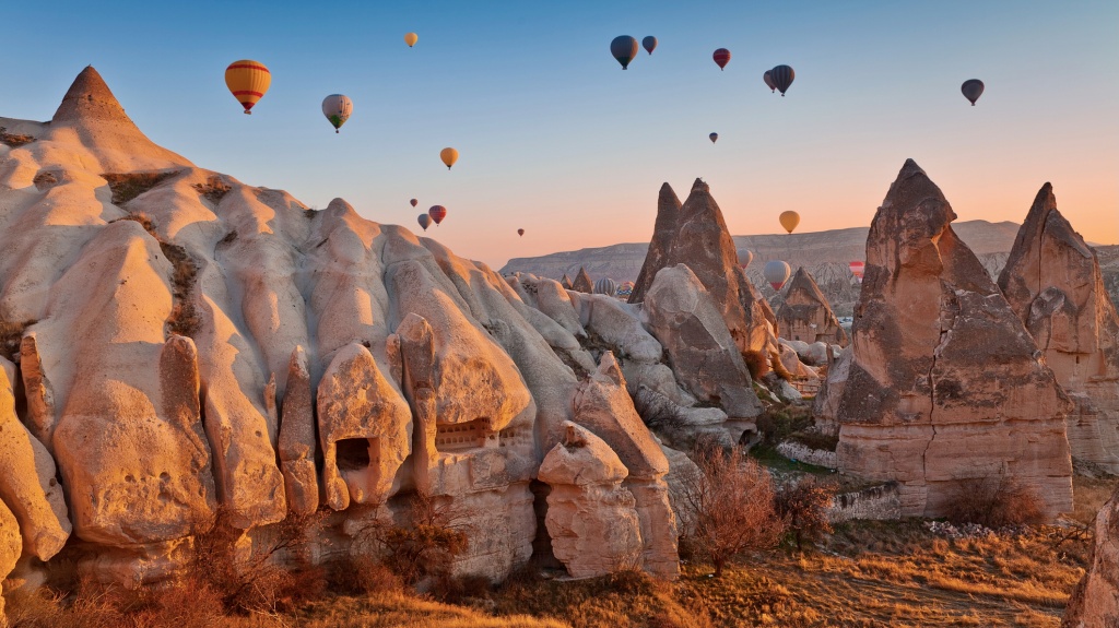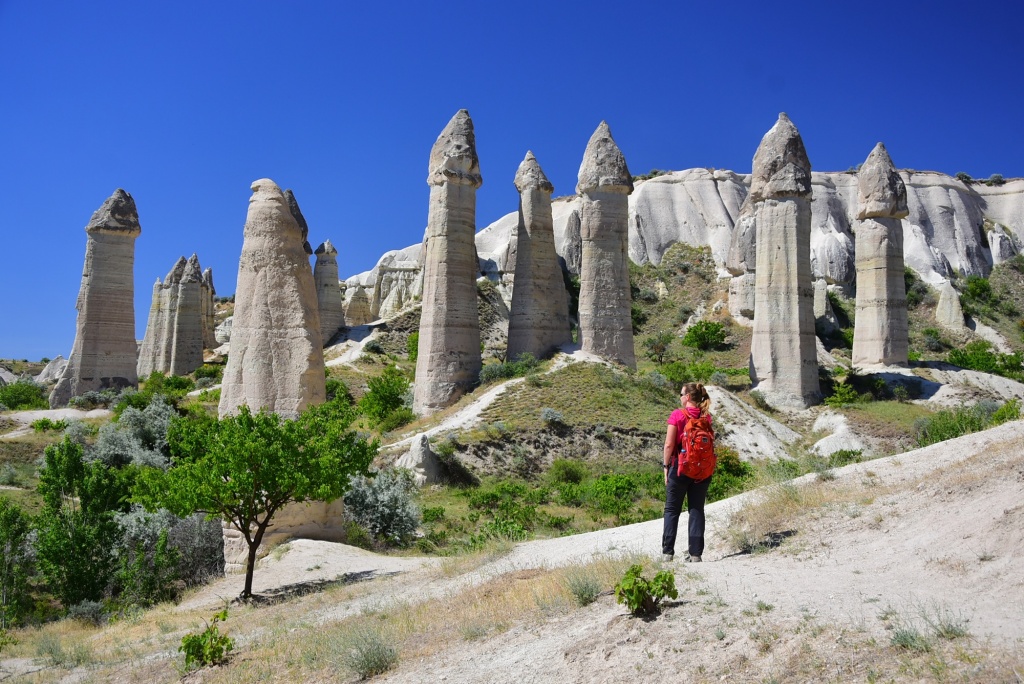 3. nap Kappadókia: Love Valley, Uçhisar, Pigeon Valley2Akik szeretnék más szemszögből látni a csodás Kappadókiát, és fel tudnak kelni korán, azok egy rendkívül látványos és különleges fakultatív program keretében a napfelkeltét ma hőlégballonról élvezhetik. Káprázatos élmény a magasban megpillantani a Nap vörös korongját, amint a fennsík szélén felbukkan, és beragyogja ezt a Meseországot. Reggeli után aztán a homokos ösvényekre térünk vissza, és elsőként bebarangoljuk a Love Valley-t, ahol a kőgombák lehetőséget nyújtanak vicces fotók készítésére. Innen a közeli Uçhisar városába utazunk tovább, ahol az egész környéket uraló, hegytetőn álló vár trónol – természetesen ez is kőbe faragva. Kis szerencsével találunk egy pékséget, ahol megkóstolhatjuk a pide-t, török pizzát, ami persze csak nevében hasonlít olasz rokonára – viszont legalább annyira finom, vagy a számos helyi kis étterem egyikében kóstolhatjuk meg a már megszokottá váló remek ízeket. Az ebéd elfogyasztása és az erőd megtekintése után a város alatt húzódó Pigeon Valley-be is bekukkantunk, melyen keresztül visszatúrázunk a szállásunkra. (5 km, 200 m szint le) A városba visszatérve szabadprogram keretében a vállalkozó szelleműek akár azt is kipróbálhatják, milyen egy tradicionális hamam (azaz törökfürdő): pihenhetünk meleg kőasztalon fekve, és a túrákban elfáradt tagjainkat felfrissítik szakavatott kezek egy kellemes habos masszázzsal. Szállás: szálloda, ellátás: reggeli.