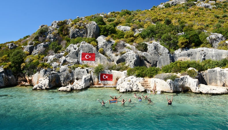 - hajózás az ókori Lükia elsüllyedt romjai között,