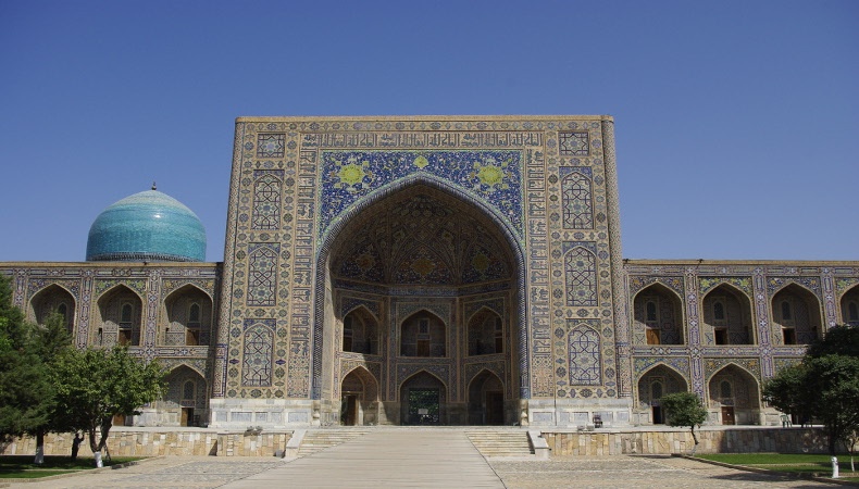 1Reggeli után vonattal a mintegy 300 kilométer távolságra fekvő Szamarkandba utazunk. Indulást követően kitapasztalhatjuk az üzbég vasúttársaság szolgáltatásait, barátkozhatunk a helyi emberekkel. A táj egyre kopárabb, ahogy behatolunk Kizil Kum sivatagba, mely Üzbegisztán területének kétharmadát foglalja el. Szamarkand a hajdani selyemút városai közül talán a leglátványosabb és a legjobb állapotban fennmaradt. Az emberiség egyik legősibb települése, mely az időszámításunk előtt kezdett épülni. Nagy Sándor hódításai között előkelő helyen szerepelt, a selyemút egyik legfontosabb állomása volt a fontos kereskedelmi útvonalak találkozásánál. Az iszlám építészet számtalan csodálatos emlékét láthatjuk itt. Megtekintjük a Amur Timur (Timur Lenk) mauzóleumát, a Regisztán teret, az iszlám világ talán leghíresebb csempedíszével, valamint az egyik medresze homlokzatán a Korán valamennyi előírását semmibe véve szarvasokat kergető oroszlánokkal. Szállás egyszerű szállodában. -