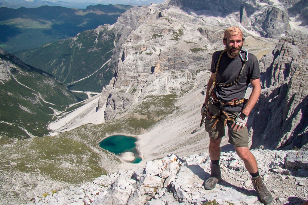 4Mai útvonalunk, a Giovanni Lipella via ferrata már igazi kihívást jelent. Az előző napok közepes nehézségű ferrátái után egy rendkívül látványos, technikás, egész napos megpróbáltatás következik, melynek célja a Tofana di Rozes impozáns tömbjének körbetúrázása! A hegytömböt délről kerülve először a hegy gyomrába vájt világháborús alagutakon kapaszkodunk egyre feljebb, majd törmeléklejtőkön átkelve a függőleges sziklafalakon, sziklapárkányokon kell mind magasabbra küzdenünk magunkat. Az alattunk húzódó több száz méteres mélységek láttán abszolút szédülésmentességre, a függőleges felszökellések leküzdéséhez pedig némi karizommunkára is szükségünk lesz. Útközben több helyen is láthatunk az I.világháború idejéből származó romokat. 2694 méteres magasságban, a Tre Dita különleges sziklaalakzata is mind egy-egy torony, amit a katonák vágtak ki a hegy gerincéből. Innen már csak egy rövid ereszkedés választ el a Giussani menedékháztól, ahol megpihenhetünk és erőt gyűjthetünk a még hátralevő ereszkedéshez, vissza a főútra, buszunkhoz. Este minden bizonnyal fáradtan, de óriási élményekkel gazdagodva zuhanhatunk hálózsákjainkba. (Szállás: kemping. Nehézség: C-D, menetidő: 8-9 óra, szintkülönbség: 980 méter fel/le.)