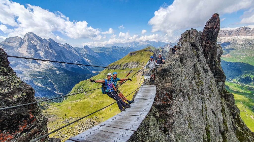 Cortina környékének panorámás via ferrátái után ezen a Dolomitok programunkon a Sella- és Rosengarten-csoport környékén kapaszkodunk, több irányból megcsodálva ismét a megdöbbentően szép tájat. Mindenki számára felejthetetlen élmény az égbetörő sziklacsipkék között kapaszkodni a hegyoldalakon, törékeny függőhídakon átkelni, felküzdeni magunkat a gyönyörű panorámával kecsegtető csúcsok tetejére. A részvételhez elengedhetetlen, hogy legyen tapasztalatod, ha nem voltál még via ferrata túrán, akkor előbb könnyebb, kezdő túrákon próbáld ki magad!. A többi Dolomitok programunkhoz hasonlóan a via ferrata és a gyalogtúra csoport egymástól eltérő útvonalakon halad.